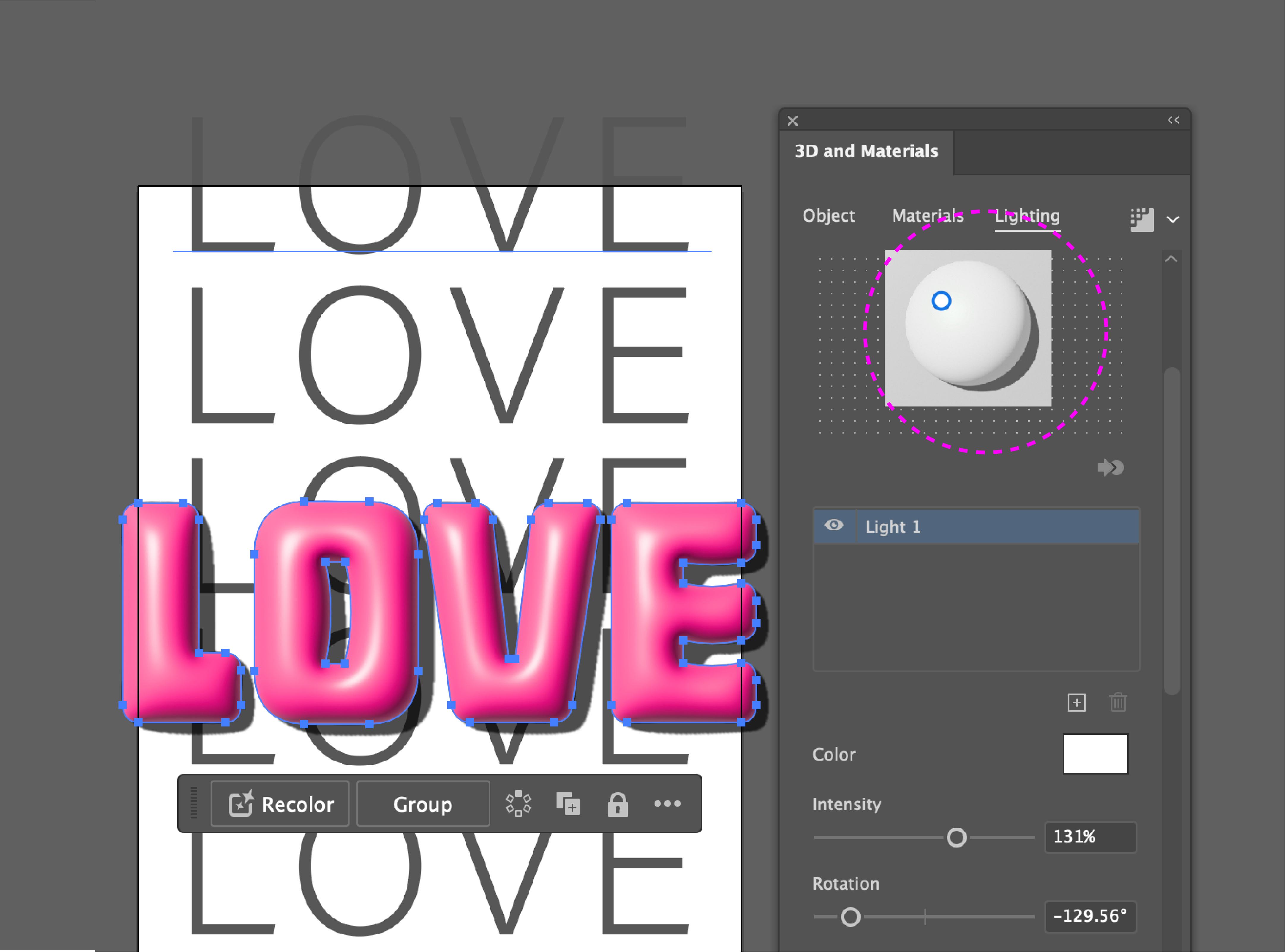 또한 빛이 이동하기 때문에 글자의 음영감도 함께 조절할 수 있습니다.