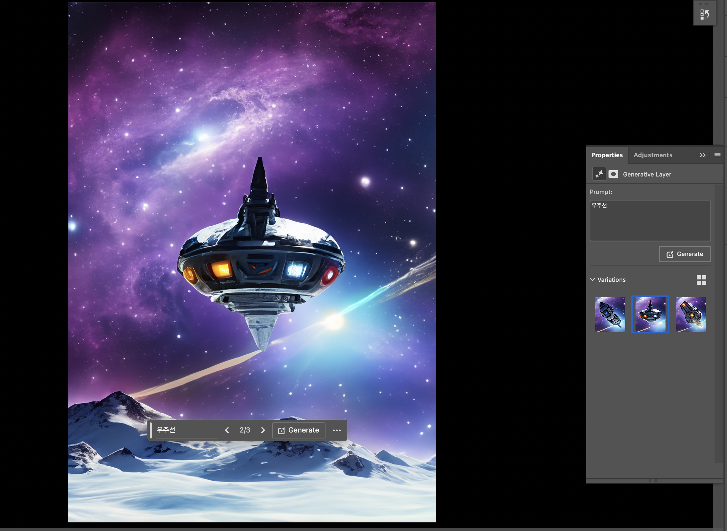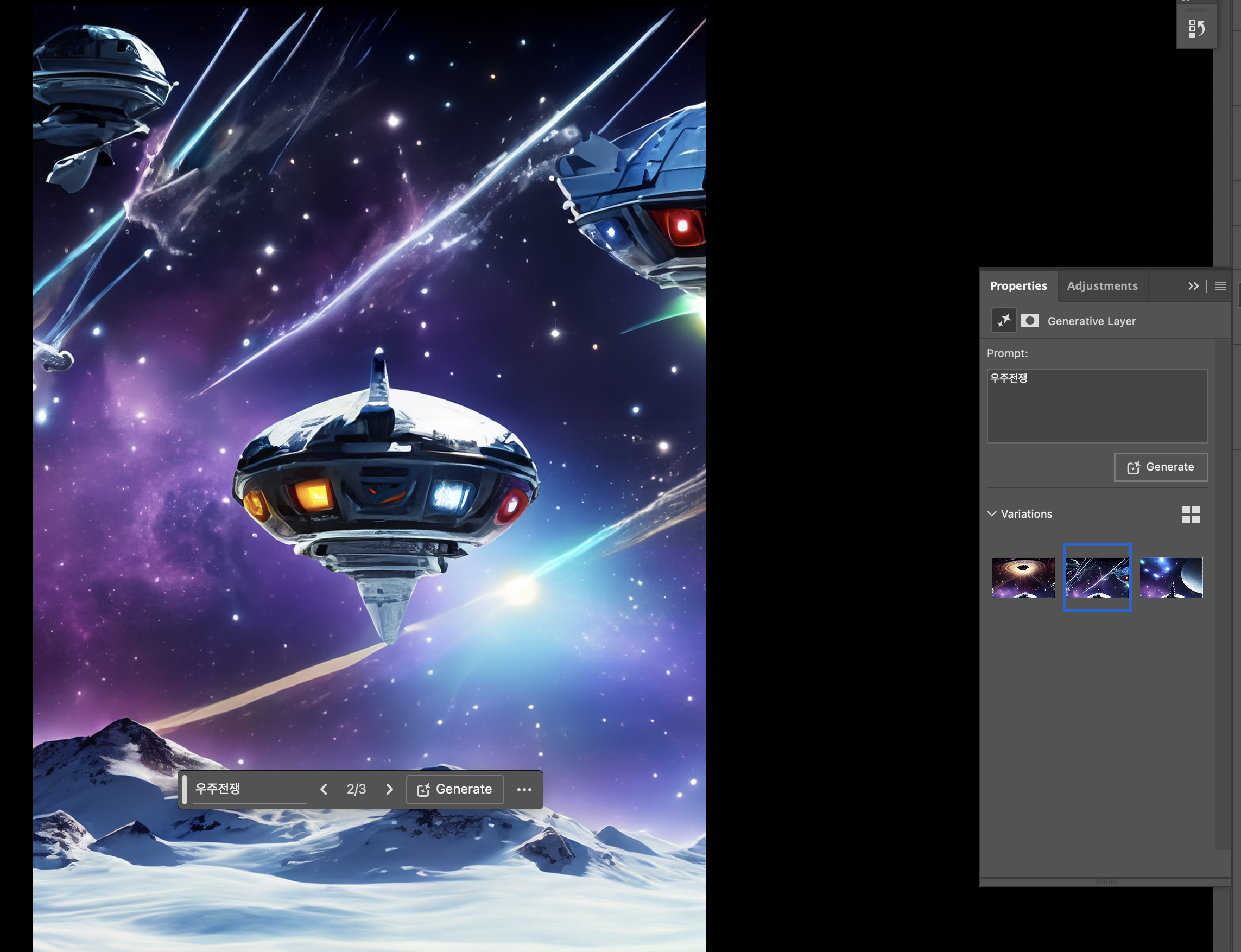 일단 우주 배경을 만들기 위해서이고, 이 생성형 ai기능은 선택한 영역 안에서 활성화되기 때문이에요.