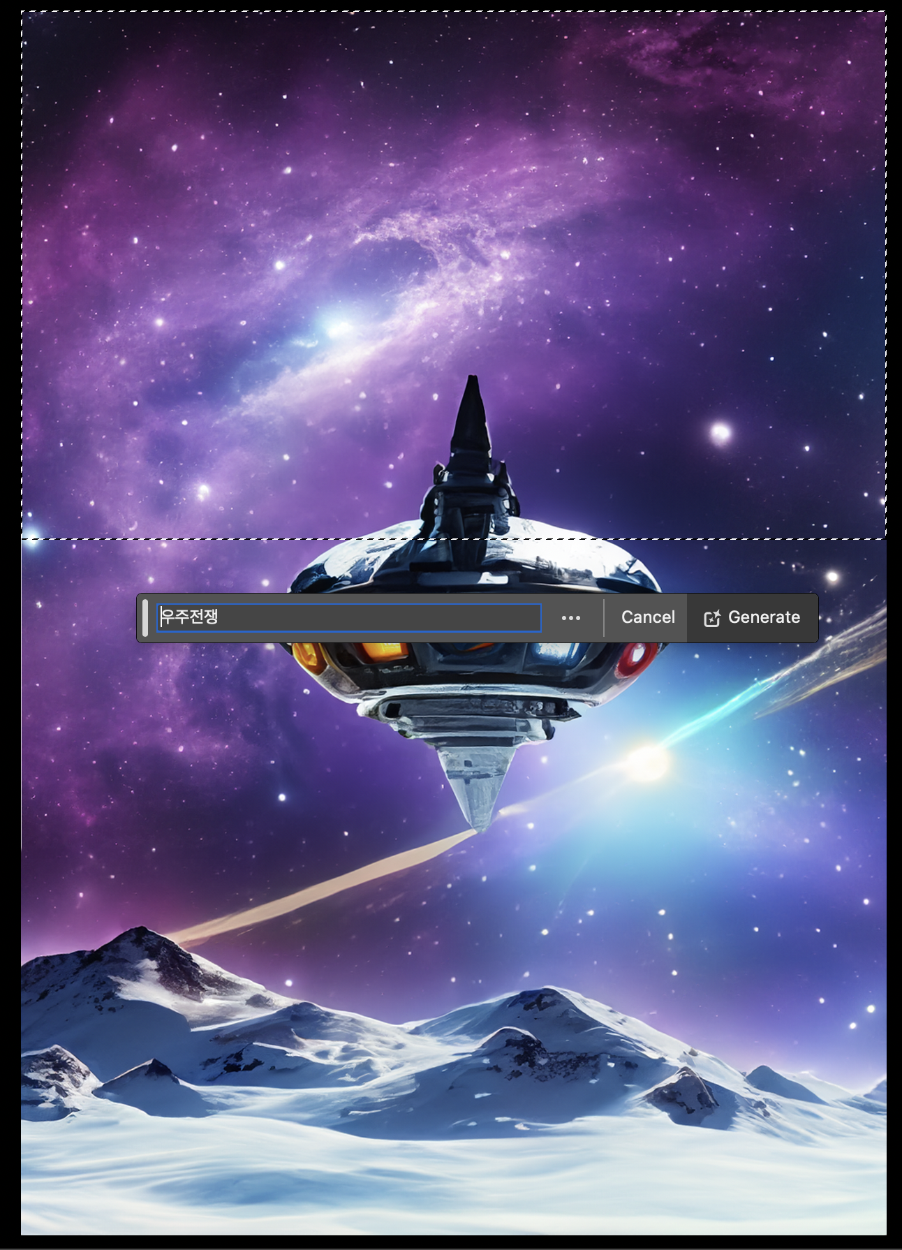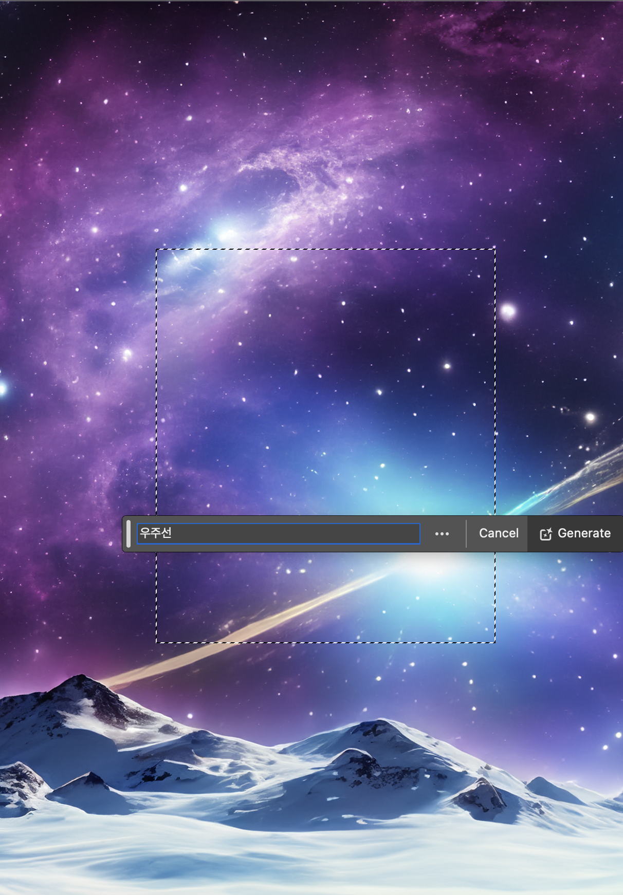 일단 우주 배경을 만들기 위해서이고, 이 생성형 ai기능은 선택한 영역 안에서 활성화되기 때문이에요.